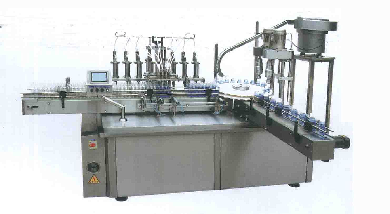 該液體灌裝旋蓋機(jī)是在引進(jìn)和吸收國外技術(shù)的基礎(chǔ)上,由我公司自主研發(fā)的一款專業(yè)針對西林瓶、玻璃輸液瓶或類似的瓶子的灌裝鎖蓋一體機(jī),能同時(shí)完成理瓶、定量灌裝、上塞(丁基橡膠塞)、上蓋和軋蓋封口等動作。本機(jī)采用日本全進(jìn)口高精度封閉式凸輪分度工位器,精度高,運(yùn)行可靠,使用壽命長。該分度器結(jié)構(gòu)簡單,長期使用無需維修。