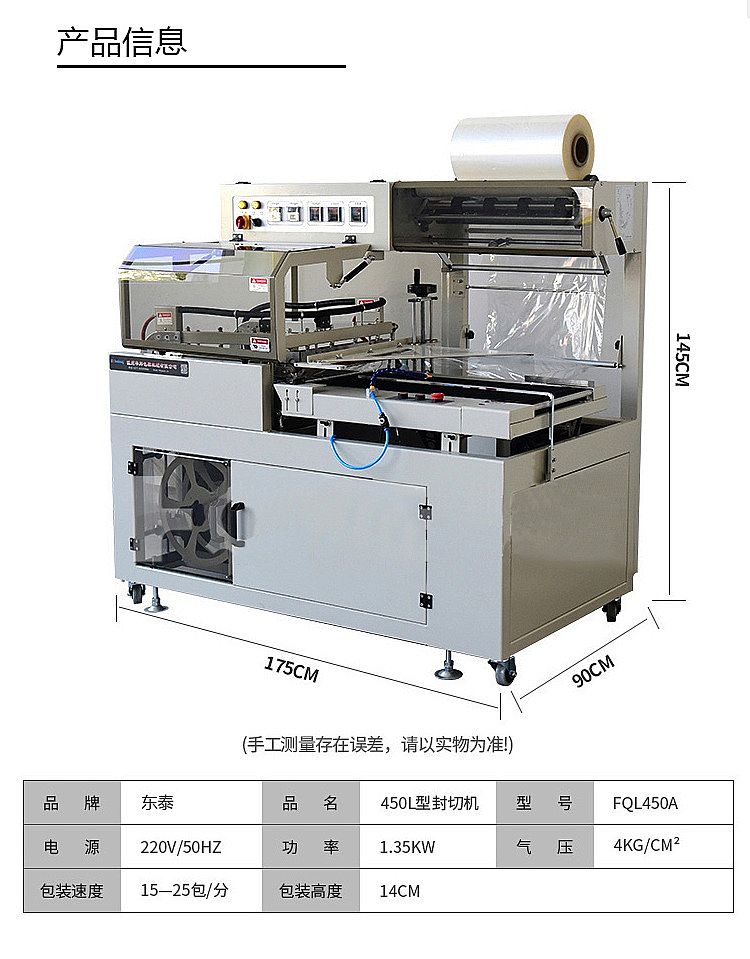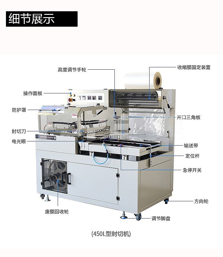 1.本機(jī)是一款全自動(dòng)操作的L型封切及收縮包裝的設(shè)備,可連接各種自動(dòng)化包裝的流水線作業(yè)。