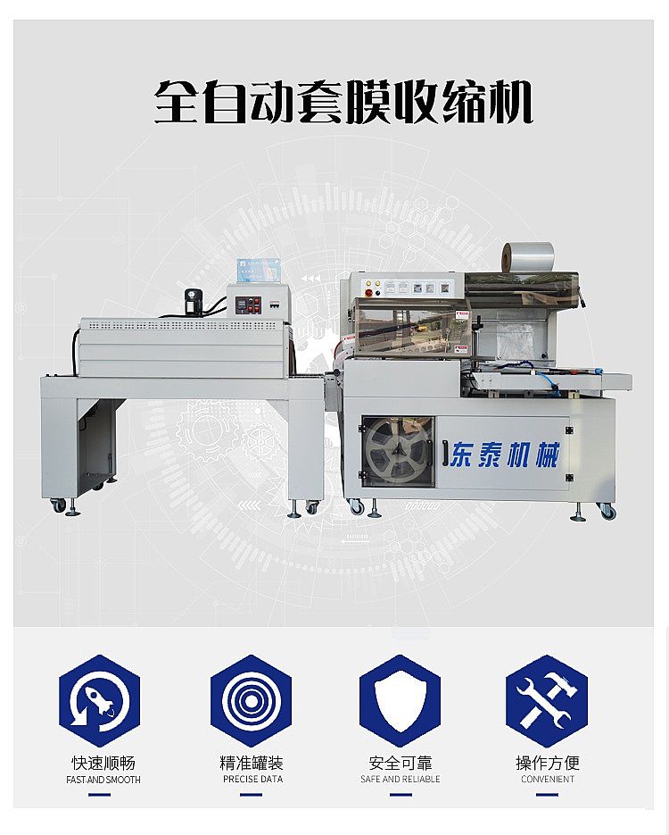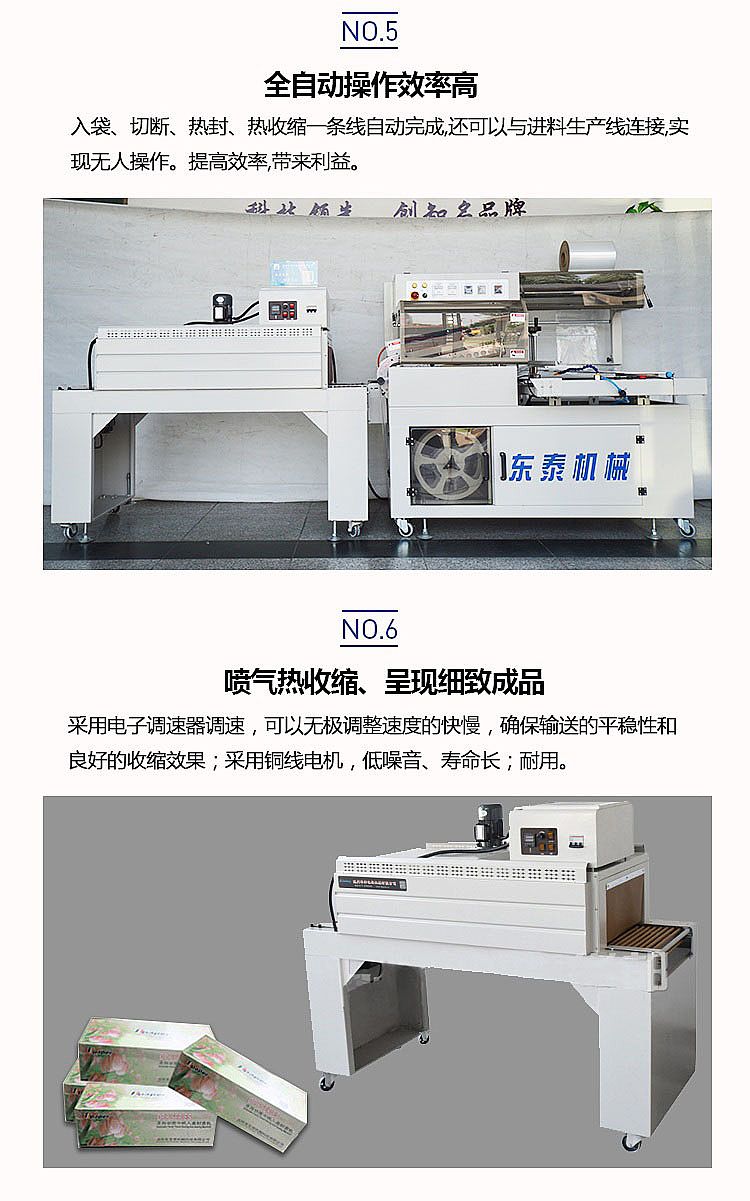 。確保輸送的平穩(wěn)性和良好的收縮效果,采用銅線電機(jī),低噪音、壽命長(zhǎng)、耐用。