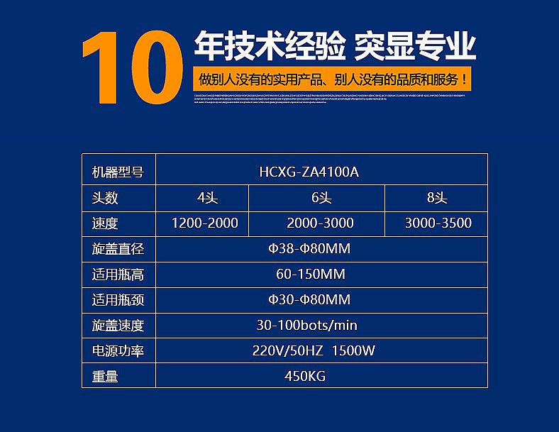 6.旋蓋機構高度可快速調(diào)節(jié),可適用相同口徑、不同高度的瓶子旋蓋;更換部分零件即可實現(xiàn)不同瓶徑、不同口徑的旋蓋,更換快捷方便。