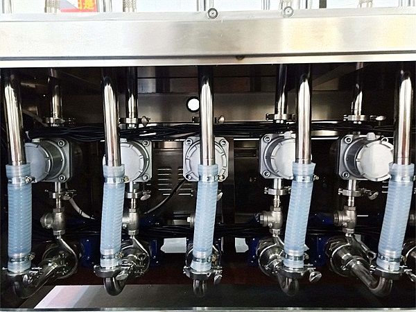 4.流量計(jì)式灌裝機(jī)是食用油灌裝機(jī)常見(jiàn)的灌裝方式。在每個(gè)灌裝閥上安有一個(gè)高精度的電子流量計(jì),通過(guò)計(jì)量物料的體積實(shí)現(xiàn)定量灌裝。該系列灌裝機(jī)采用流量計(jì)式計(jì)量灌裝原理,多項(xiàng)專(zhuān)利認(rèn)證,適用于各種規(guī)格(1-5升)的南瓜籽油、榛子油、牡丹籽油、芝麻油、山茶油、亞麻籽油、棉籽油、橄欖油、大豆油、玉米油、菜籽油等食用油灌裝。設(shè)備采用高精度的旋轉(zhuǎn)編碼器計(jì)量,保證了1%的灌裝精度,在保證灌裝精度的同時(shí),提高了20%-35%的灌裝速度,操作簡(jiǎn)單,維護(hù)方便,節(jié)約人工成本,生產(chǎn)效率更高。